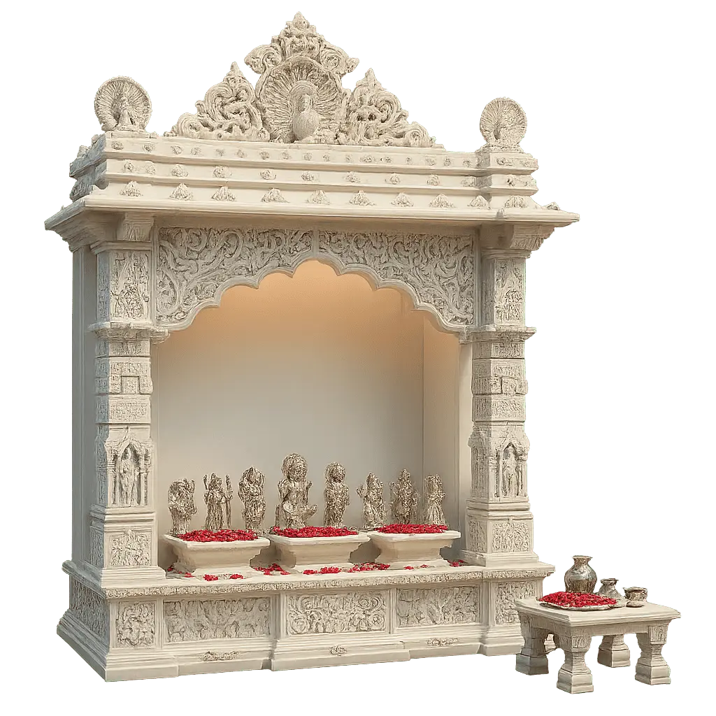 Enhance your sacred space with our Majestic Handcrafted Marble Temple, made from premium white marble. It features detailed carvings, a grand dome, and a spacious pooja base with hidden storage. Perfect for luxurious or traditional homes, each temple is a blend of devotion and artistry. Customization available to match your style.